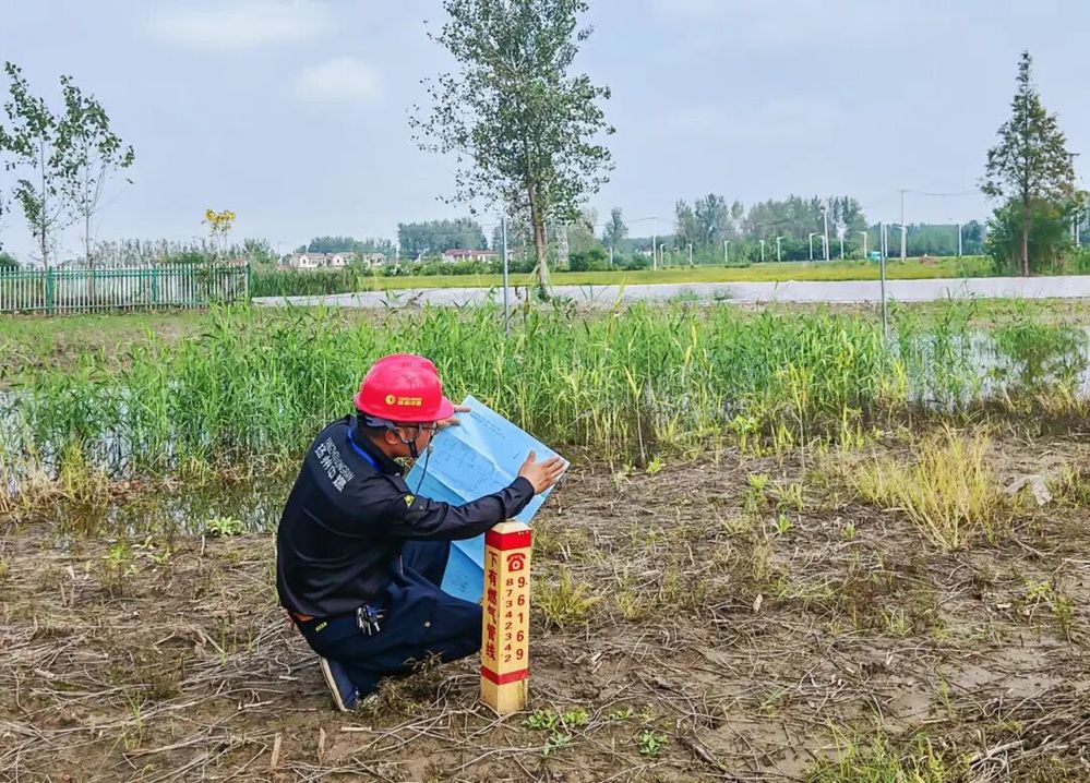 今年7月盛夏,韋煒一如既往例行巡線,途中行至沙頭門站,發(fā)現(xiàn)向東約50米處一小河塘正施工開挖擴(kuò)建。他立即想起原較淺小河塘下面有一根中壓PE315運(yùn)行燃?xì)夤艿溃刂浦畹滏?zhèn)、頭橋鎮(zhèn)氣源,且河塘兩側(cè)均有燃?xì)夤芫€標(biāo)識(shí)樁,河塘施工前并未收到管線對(duì)接通知。韋煒第一時(shí)間向部門領(lǐng)導(dǎo)匯報(bào)現(xiàn)場(chǎng)情況,隨后走訪群眾尋找到河塘主人和所屬村村委會(huì)進(jìn)行交涉。
